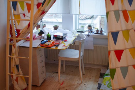 และเรายังสามารถแบ่งพื้นที่ห้องนอนเด็กได้ง่ายๆ โดยการใช้ผ้าม่านสีสันสดใสมากจัดวาง