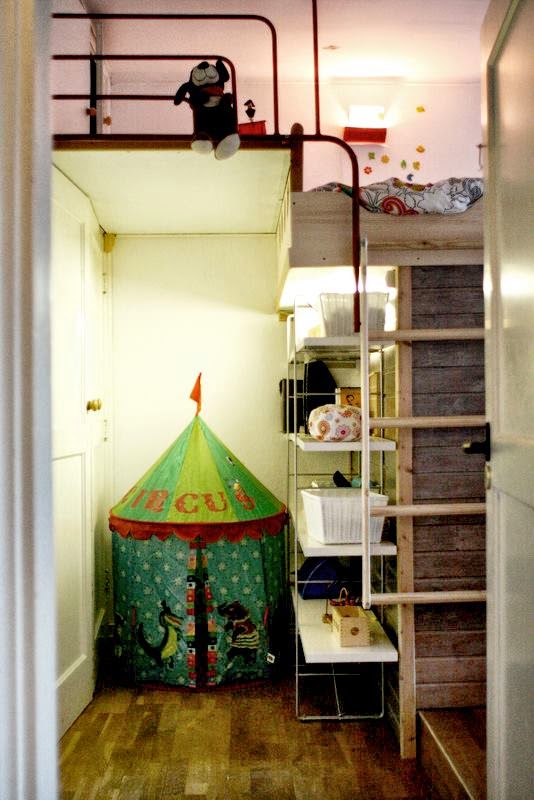 และเรายังสามารถแบ่งพื้นที่ห้องนอนเด็กได้ง่ายๆ โดยการใช้ผ้าม่านสีสันสดใสมากจัดวาง